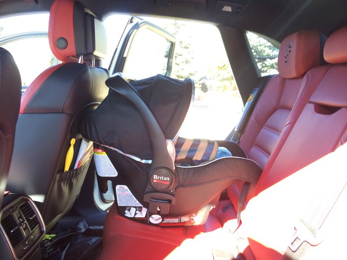 儿童座椅,这是在把下面底座拿掉时的后排,此时前排空间不错,但是必须用副驾驶座椅顶着宝宝安全椅才能保证安全
