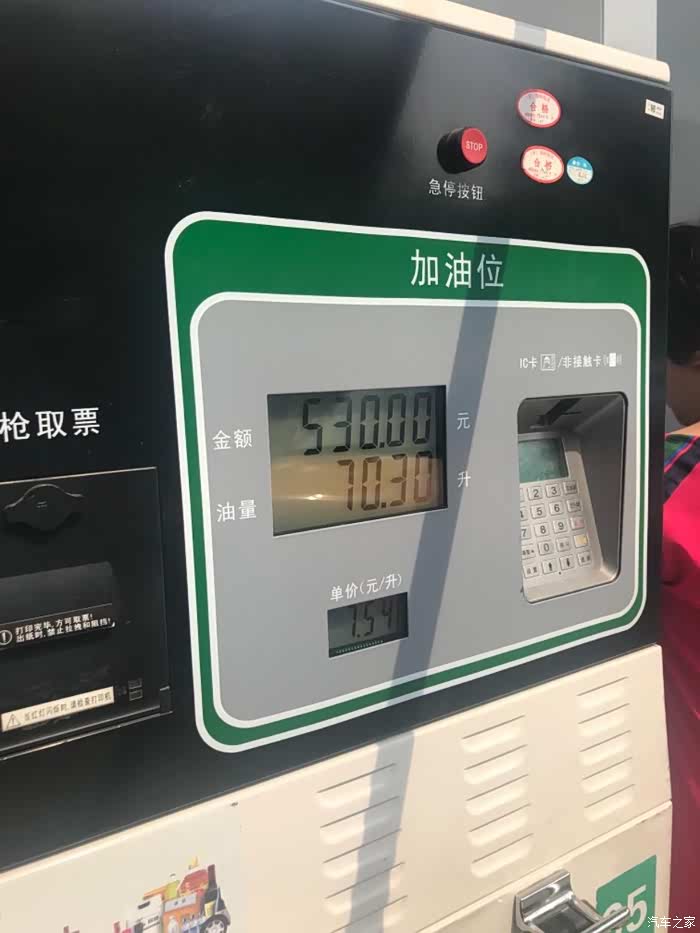 赶紧找加油站,配置表上68L的油箱加了70L油