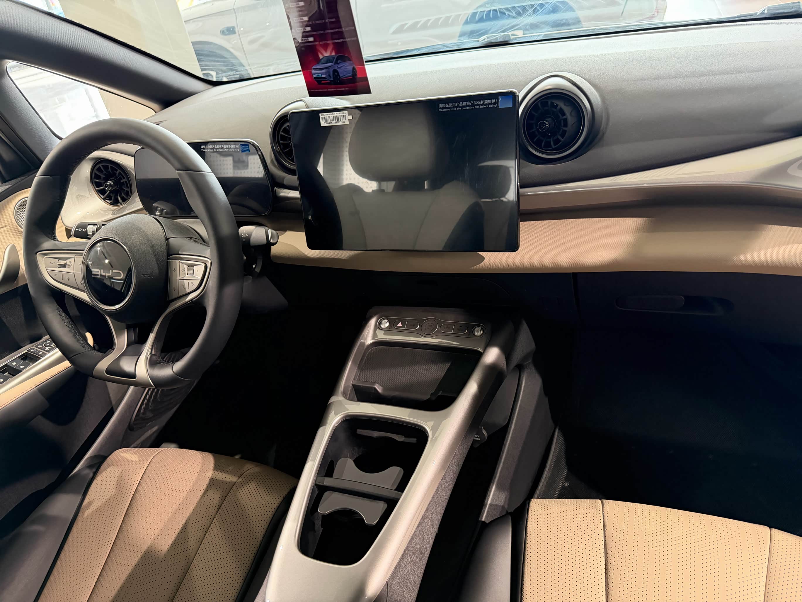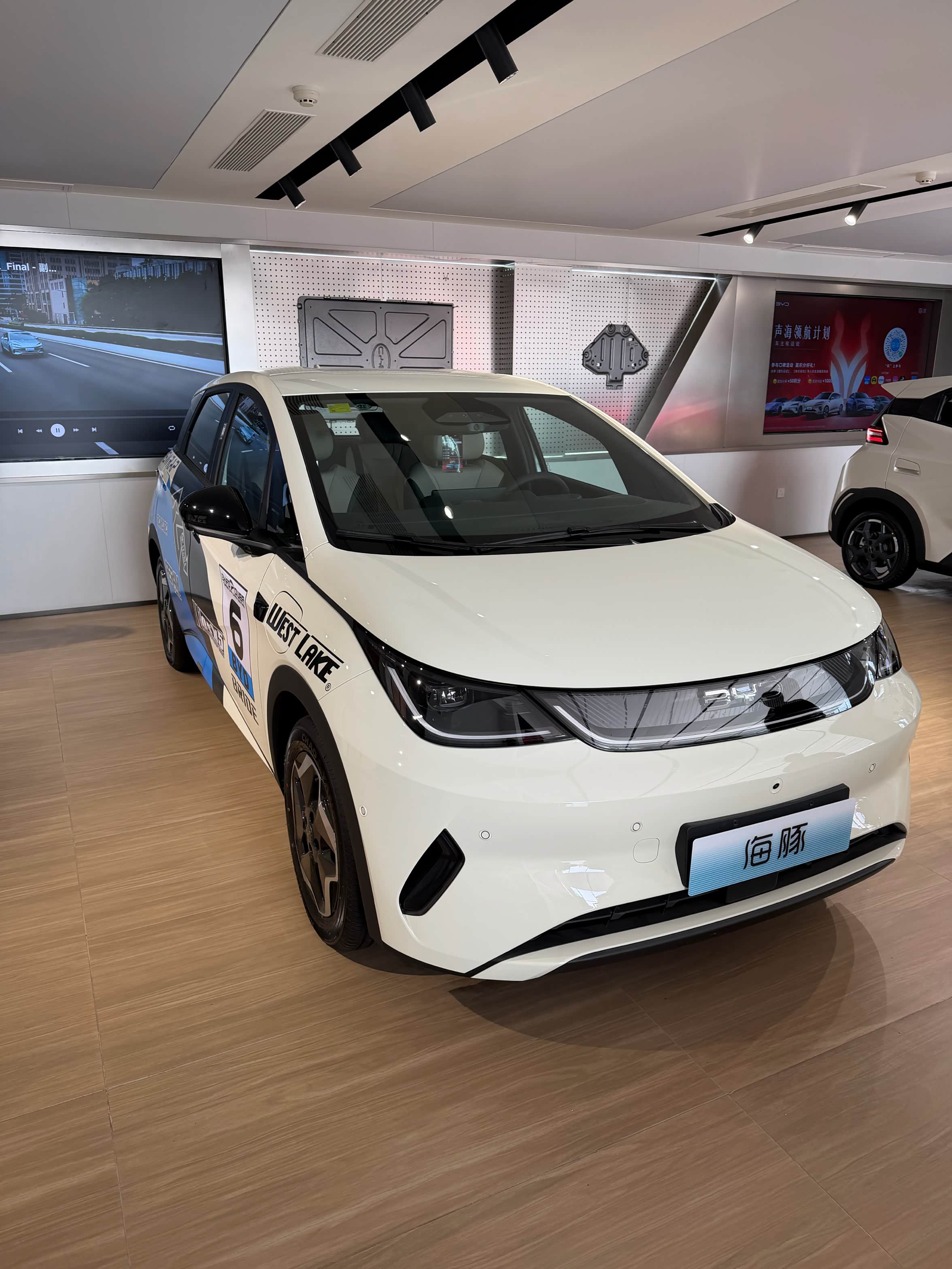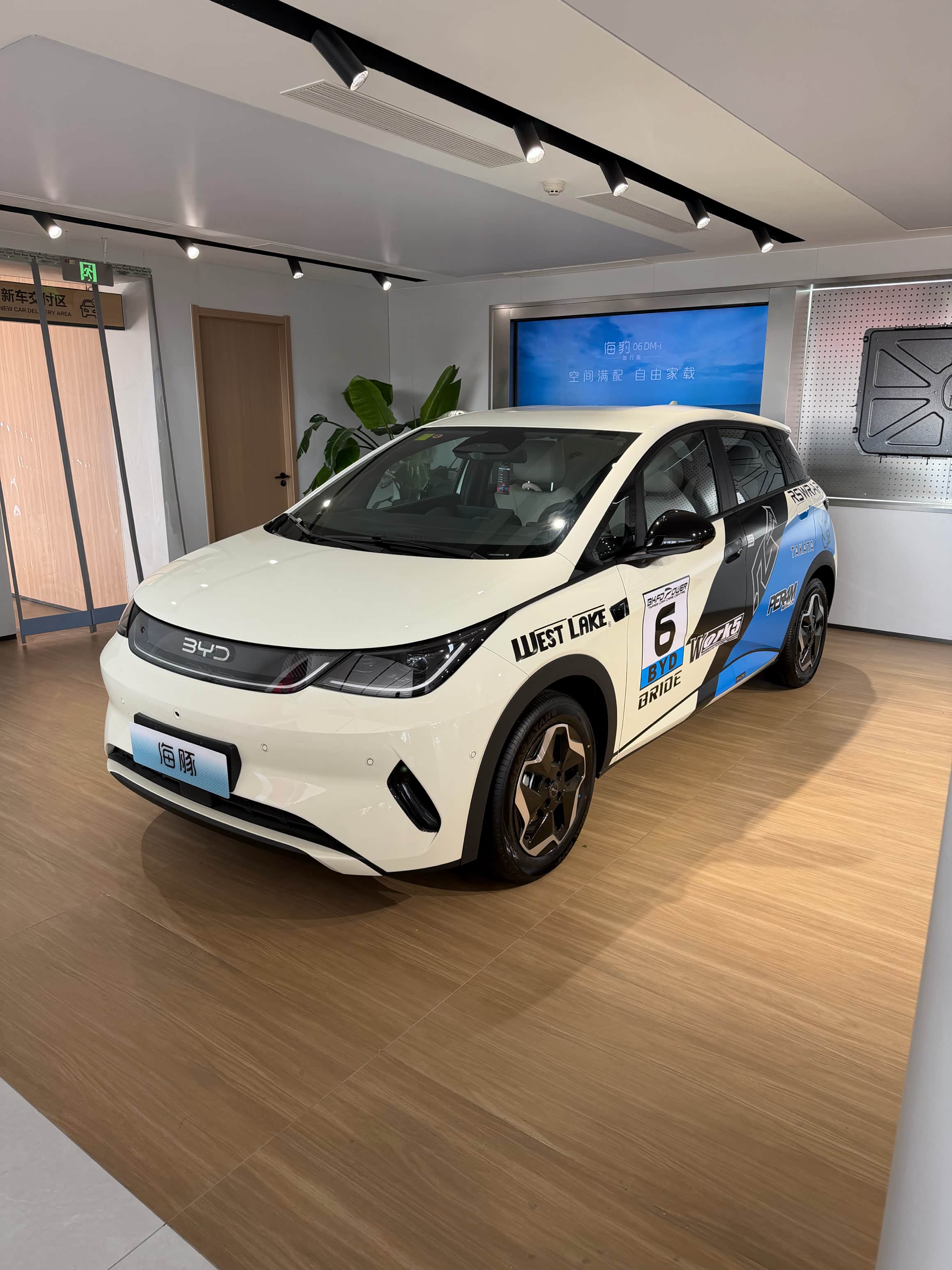今天终于提到我的小海豚啦!早上九点就冲到4S店,心情比上学时盼放假还激动。销售先带我验车,绕着车身看了一圈,漆面亮亮的没划痕,轮胎和玻璃的生产日期也都新鲜,坐进车里按了按所有按键,车机屏幕还能旋转,挺有意思。