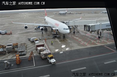 这是在上海浦东机场, 乘坐瑞士航空的飞机, A340.