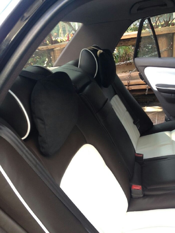 原来的皮老化了,换了小改一下,黑棕色跟白色,白色的边线!这样感觉看起来没有那么沉闷。皇冠的座椅不错,够舒服!