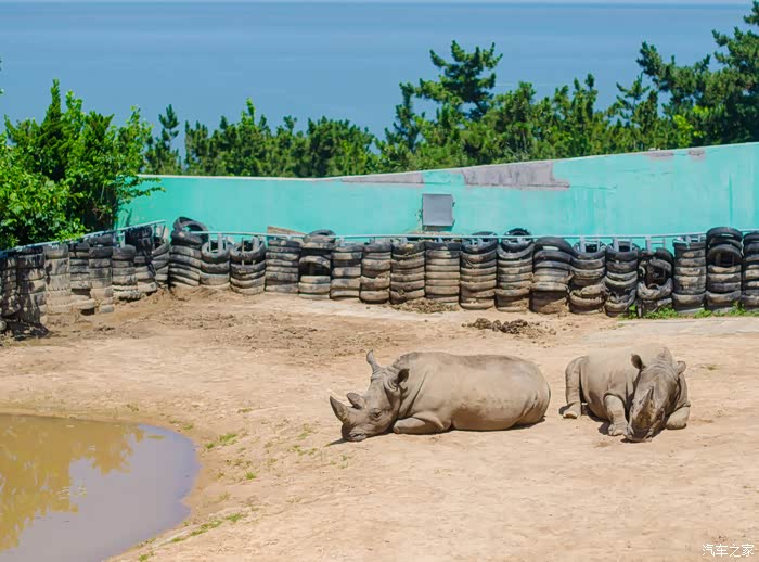 非洲动物区,是陆上动物最靠近海边的一片区域,不得不赞叹当初提出这样区域分布的设计,非洲的动物和大海这样原本几乎没有交集的两样事物就这样在神雕山野生动物园有了交集。全身泡在水池里的河马,将头探出来吃游客手中树叶的长颈鹿,还有懒洋洋地趴在那的犀牛,这些在神雕山野生动物园都能看到。