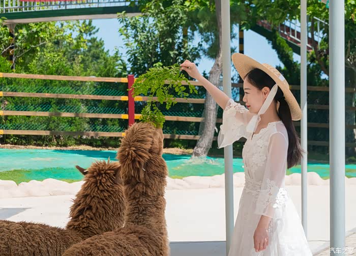 游览完猛兽区,便会来到和谐乐园,之所以称为和谐乐园,是因为在这片区域,你不仅能看到动物,还能跟动物亲密互动,在每个可以喂食的动物围栏外都可以买到动物的专属食物,兔子的胡萝卜、羊驼的草、袋鼠的柳枝,你可以亲手给它们喂食。