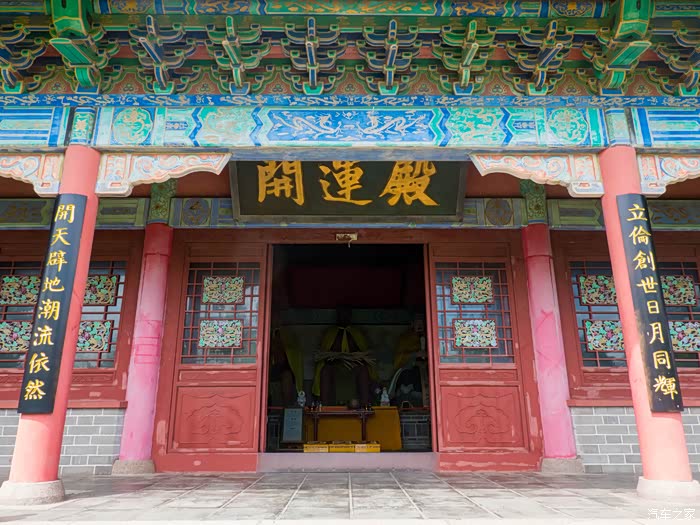 穿过两座大殿,一大片的荷花池呈现在我们眼前,七月的荷花正是盛开的季节,一条长廊从荷花池中笔直得穿过,从视觉上看,这条长廊就像是径直地通向了海边一样,如此独特的场景不留下一张美照岂不是有些遗憾。