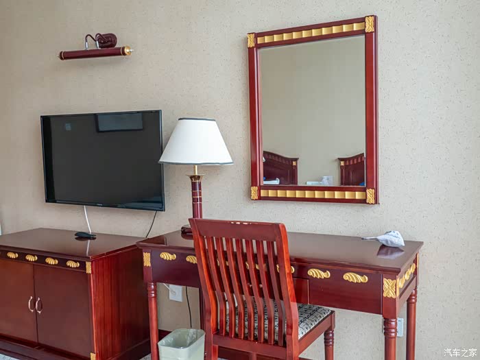 说是山庄,其实更像是一家老牌商务酒店,从大堂来看,虽然说不上富丽堂皇,但也是非常气派。服务员的服务非常细致,快速的办理好入住便带我们来到房间,每一个房间都送了欢迎水果、面膜,这么贴心的服务许多五星级的酒店都做不到。整个房间的装修也是比较简约商务,红木家具,搭配木色主色调,视觉上就非常舒适。