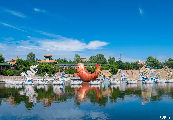 来到这里发现原来这也是西霞口的一处景点,名为隆霞湖,曾经的隆霞湖也是需要收门票才能游览的,如今的隆霞湖则免费对外开放,因此看到许多当地人在这里游玩嬉戏。还未进入景区,便已经被景区内的一些雕塑所吸引,各种各样千奇百怪的雕塑、建筑,有有跃龙门的鲤鱼、有成双成对的天鹅、还有趴在水中的蟾蜍。