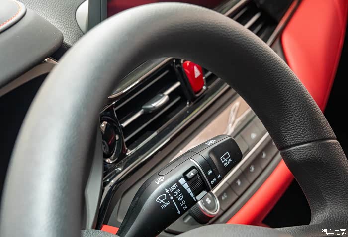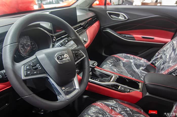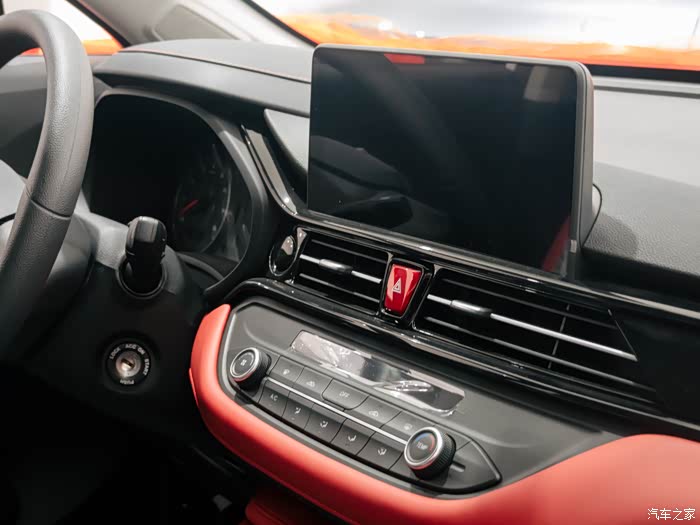 之前也接触过一些同级的其他车,外观看上去都非常不错,但内饰就比较粗糙了,而这款嘉悦X4的内饰则给了我惊喜。在德系的品控下,还是你能感受到嘉悦X4做工的精致。红黑双色的拼色内饰风格,全触控式的空间控制面板,配合出风口两侧的钢琴烤漆工艺,真的让人不禁赞叹实在是良心。而且车上还搭载了J-Link智铃3.5车联网系统和科大讯飞最新的车载语言系统,操作指令更加高效便捷。