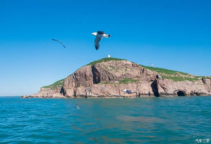 三十分钟航程便来到海驴岛,海驴岛因像一头驴卧在海中而得名,这里栖息着数以万计的海鸥,为了保护它们,如今已经不允许登岛,不过游船游览已经可以和它们亲密接触。从彼岸到对岸,从码头到海驴岛,游轮行驶在渤黄交界的这片海域,五星红旗迎着海风飘摇,海鸥也跟着风舞蹈。喜欢海风阵阵,任海风吹乱了我的头发,在这天涯海角,喜欢聆听海的声音,是那样的亲切,那样的令人心潮激荡。
