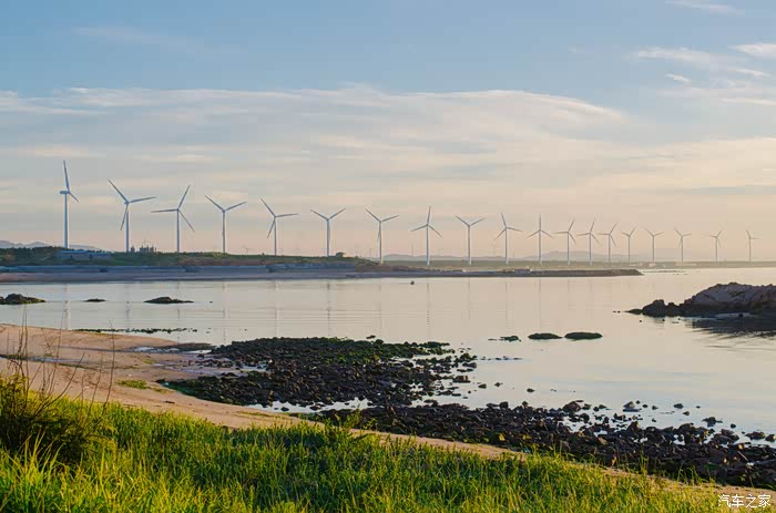 如果说日出是美好一天的开始,那么日落则是美好一天最圆满的句号,环海路上的风车迎着海风转动,本觉得看到了成山头的日出便已十分满足,开车在环海路上未曾想到邂逅了一场美丽的日落。享用完晚餐,从餐厅前往成山头管屋的路上经过环海路,看到太阳即将落下,而此时的天空已经有了些许晚霞,就找好停车的地方走向海边。