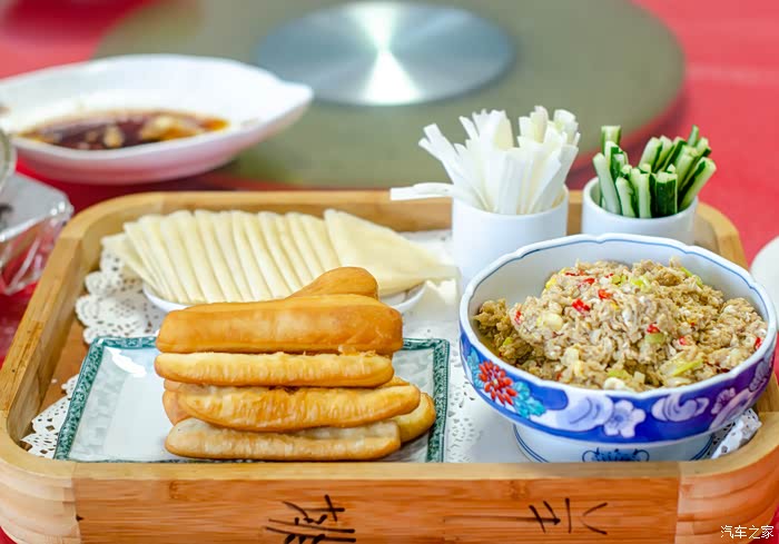 曾经来过山东多次,对于这里的美食也大多有一些了解,但虾酱这道菜品还是我第一次品尝到。虾酱,虽然名为酱,但是和我认知里的酱还是有一些区别,这个更像是馅料,用面皮包上黄瓜丝、葱丝、油条,再来一勺虾酱,送入口中便觉得无比的满足。