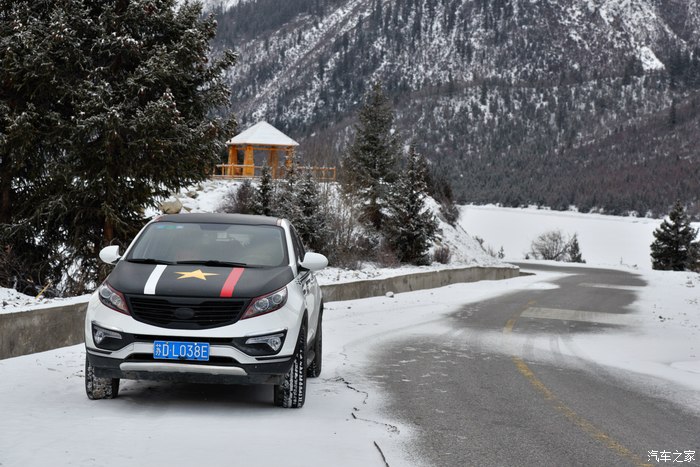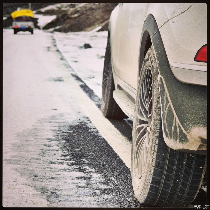 东达山的冰雪路段小心慢行,特别注意控制速度,因为天气还不错,所以没有长下坡都是冰雪路段,加上换成固铂的越野胎,不加防滑链表现得还是不错。