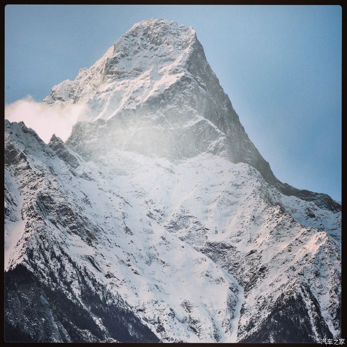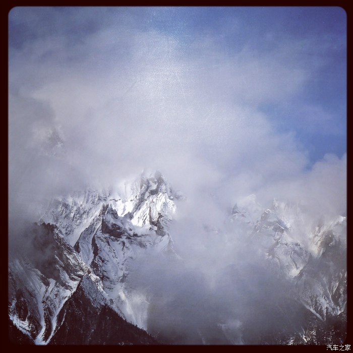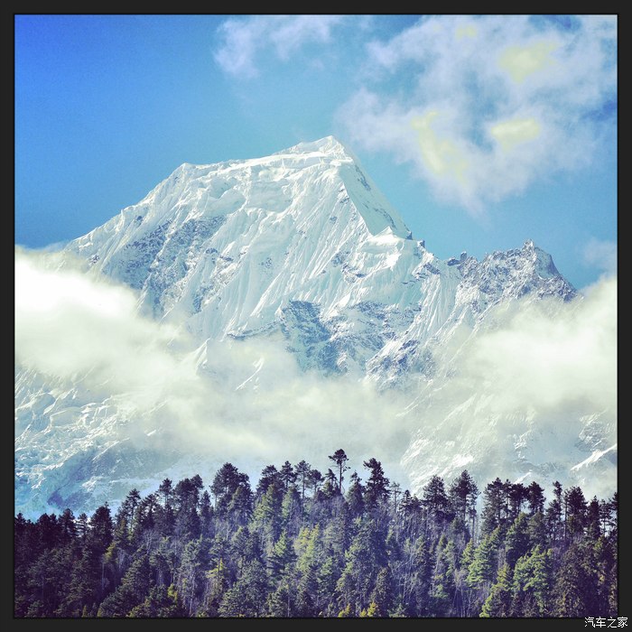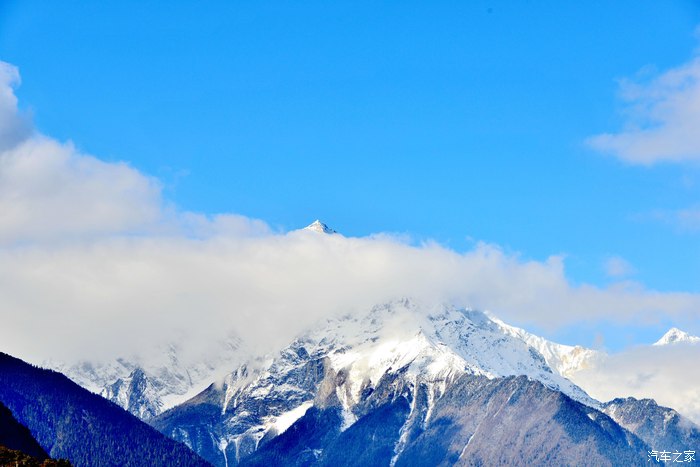 十八弯天路的中途看到了贡嘎山:难得一见,但终将相见。