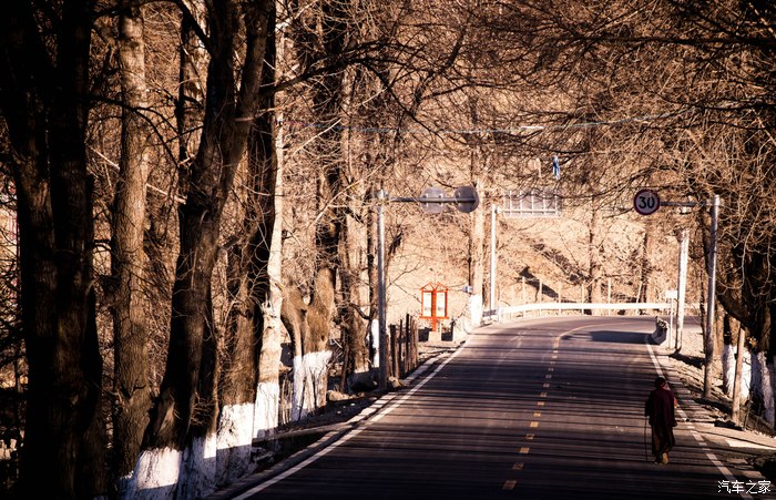 塔公草原的路上:这段路早上去是非常适合的,因为阳光的缘故拍照起来的效果会特别的好。