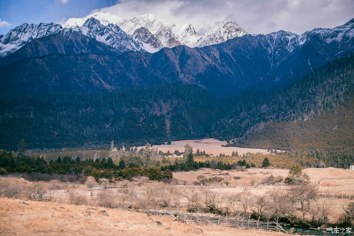 鲁朗的雪山,树林,小村寨。