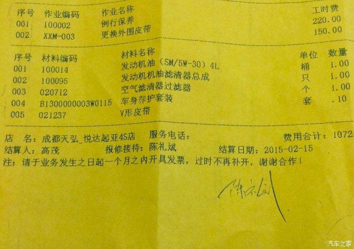 这里题外话,很感谢成都的4S店,他们的保养流程都非常专业,很多细节都会检查而不像上海帮你换换该换的就结束了。细节到灯光,到门,到后备箱,到座椅等等,底盘和轮胎和发动机舱就不多说了,所以这也是帮我看到皮带为何是如此情况的地方。他们还专门找来技术主管来看看到底什么引起智跑皮带出现这种情况,毕竟是新车公里数不多,虽然后来没什么发现,但很谢谢他们细致的检查。