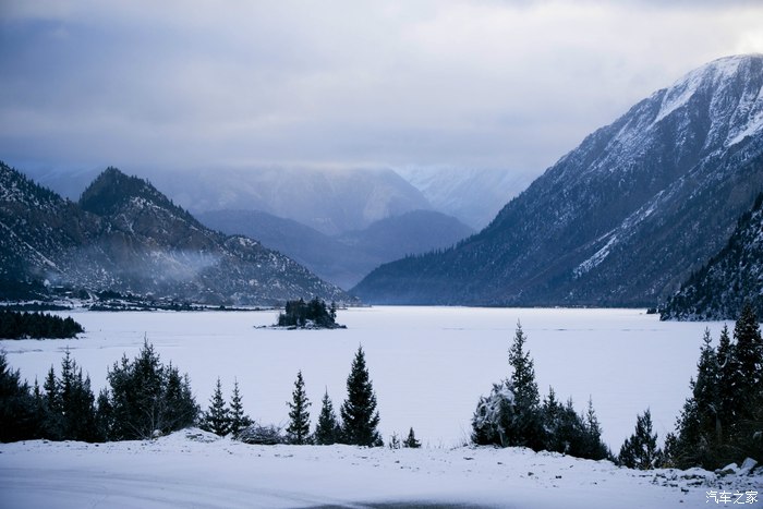 姊妹湖已经全部结成了冰,从垭口下来也十分小心,毕竟路上的冰还是蛮多的。这是第二次来这里了,三年前走川藏线的时候天气不好,所以视觉效果一般,但是这次覆盖的雪的确让它多了一点灵气。