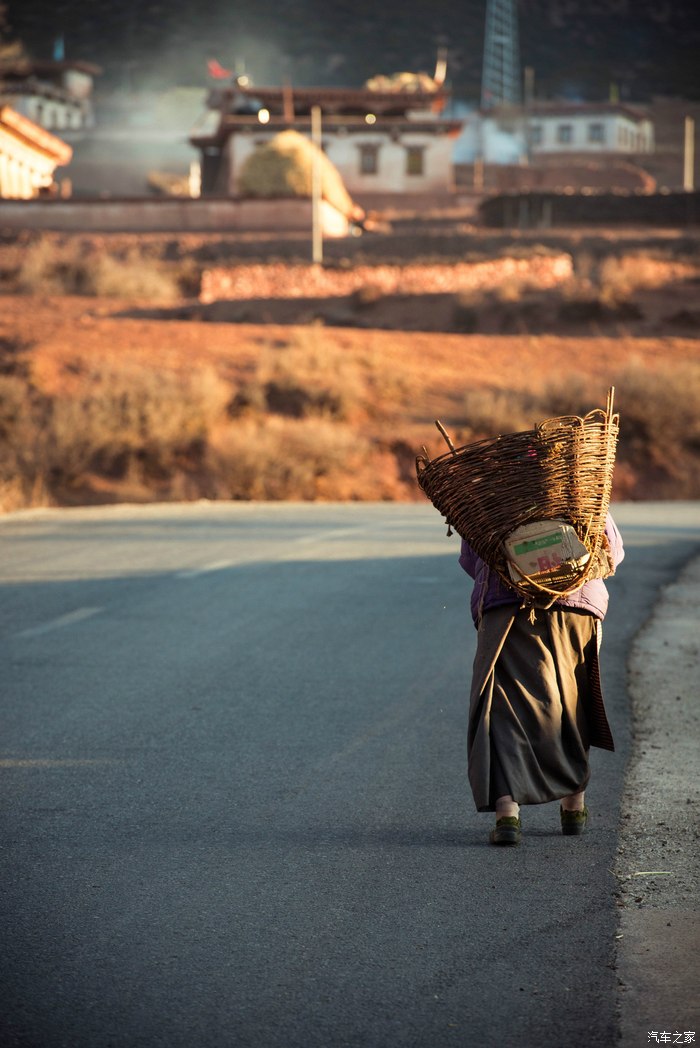新都桥-塔公的路上,遇见一位独自散步的藏人,一条路,一道光,一个人。