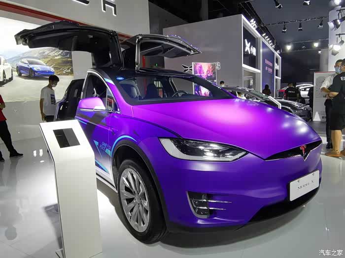 现场Model 3、Model S、Model X三款主力都来了,经过时感受是现场布置很单调,无惊无喜,唯一亮眼的是车厂给model x穿上了紫色皮肤。