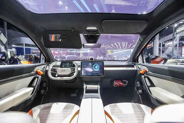 车上三折仪表盘是个亮点设计,可独立显示车辆信息、行车信息和导航、多媒体信息,有点科幻感。
