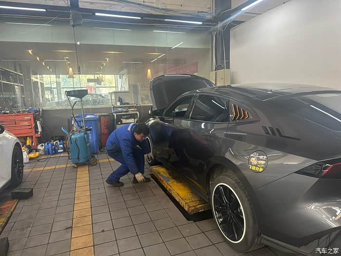 于是,我确认了保养项目,包括更换机油、机滤,以及一些常规的检查和调整。店员很快就为我的爱车安排了保养工位,技师们也开始忙碌起来。