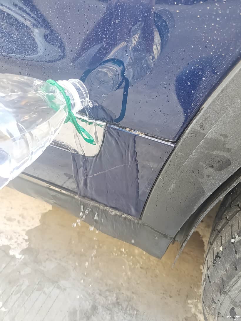 打磨结束后,用干净的微纤维抹布擦去残留的研磨剂,再用清水冲洗漆面并擦干。此时再看车身侧裙,划痕彻底不见,蓝色的漆面恢复了原本的光泽,和周围区域几乎没有色差,远看完全看不出曾经有过剐蹭痕迹。