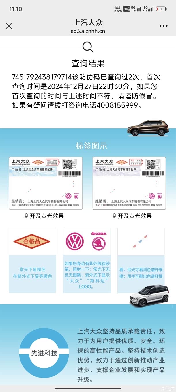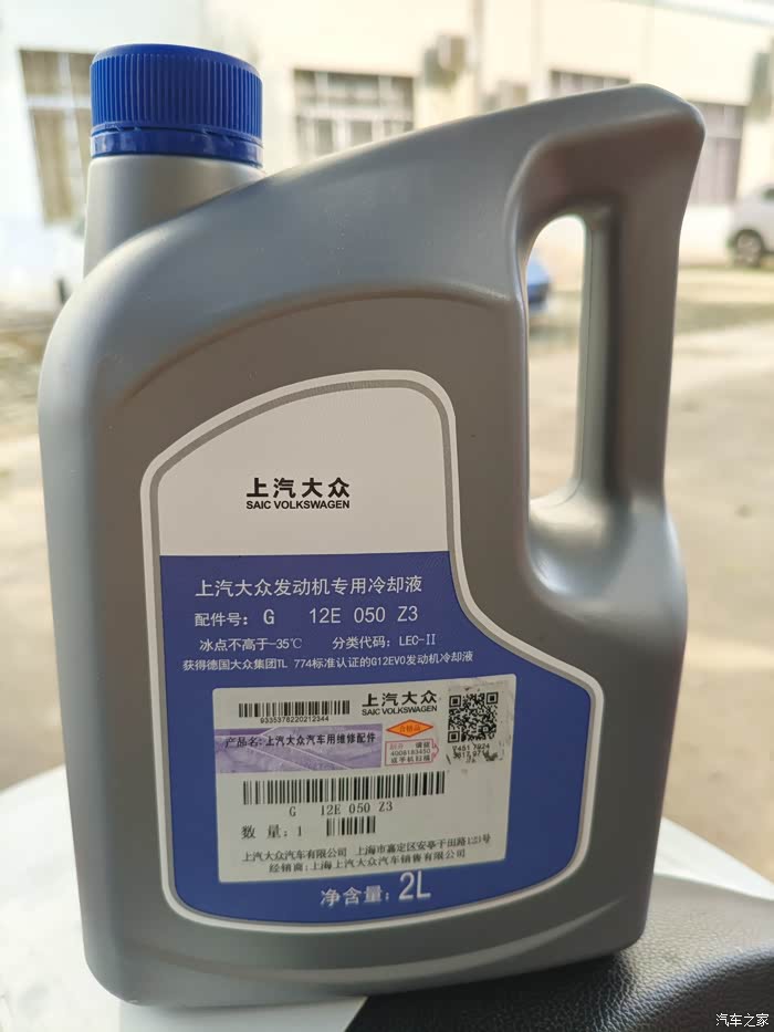 在选择冷却液时,选什么是很重要的,毕竟自己不是专业的,也怕省点钱省点事加出问题了,其实最主要是兼容性的问题,确保冷却液与车子相匹配,不然就得清洗整个冷却液系统去更换。凌渡L用到的防冻等级是-35℃,我在广西也合适了。原厂G12标准的配件直接安排,不用想那么多,回来以后扫码显示确实是正品。(有些人会觉得原厂的贵,这就需要多问点渠道了,我这个30多一瓶)