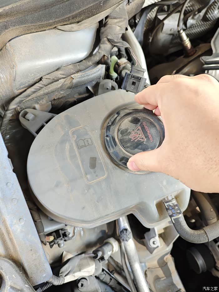 对于我来说,主要是确认渗漏还是自然消耗的问题,打开机盖找到水箱,观察了下水箱盖、水箱、水泵、橡胶软管紧扣、排空气的螺帽以及气缸垫等这些地方都没有松动,底盘和水箱下方也没有水迹,自己的车子也开了两年多将近35000公里,感觉是自然损耗,因为也快到保养时间了,决定还是自己添加,时间成本和费用也会省一些,过段时间再到店让师傅帮检查。