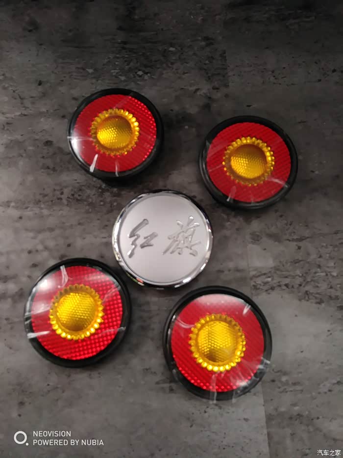 目录换标开始:用一字小改锥取下原来的轮毂盖取下后的原车轮毂盖与L5、H7上通用的原装金葵花轮毂盖对比,自己在网上买的原装金葵花标,收到货后感觉质量还要比原车自带的质量要好、更重!规格与原车的完全吻合!之前的担忧完全解除!事实上比原车的标更搭配!青川蓝的车身配金葵花轮毂标更漂亮!万绿丛中一点红!真的应验了这句话换装完2个了,继续........完全换装完毕,4个红旗标来张侧面轮毂盖换装完成的特写拉近点看看有没有违和感? NO! 前雾灯特写!镀晶之后的格栅更显档次!自己动手弄得全车镀晶!新车第一天就镀晶了!完全是个人喜爱!目的只想让“红旗”车更红!更闪耀!更永恒!镀晶完部分细...