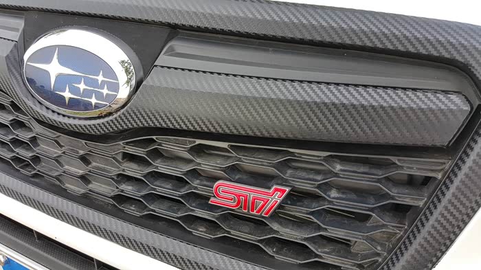 由于舍不得中网的镀铬件,最终没有选择喷漆,给中网贴上了碳纤维纸,看上去不赖。