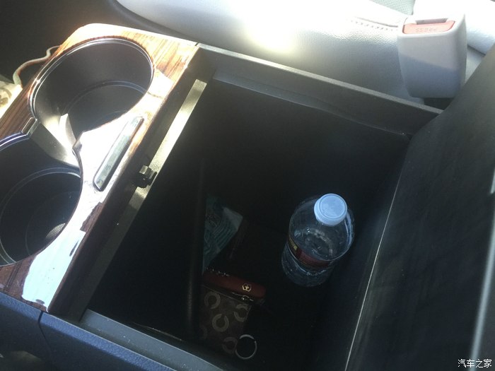 中间的扶手箱,挺深,那个水瓶是我特意放进去做参考的,就是一般的那种矿权水瓶。
