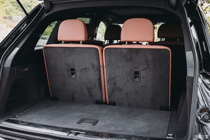 全新奥迪Q7全系标配7座,通过拉开第二排座椅,可以看到电动升降额第三排座椅按钮,无需爬进去就可以轻松的打开第三排座椅