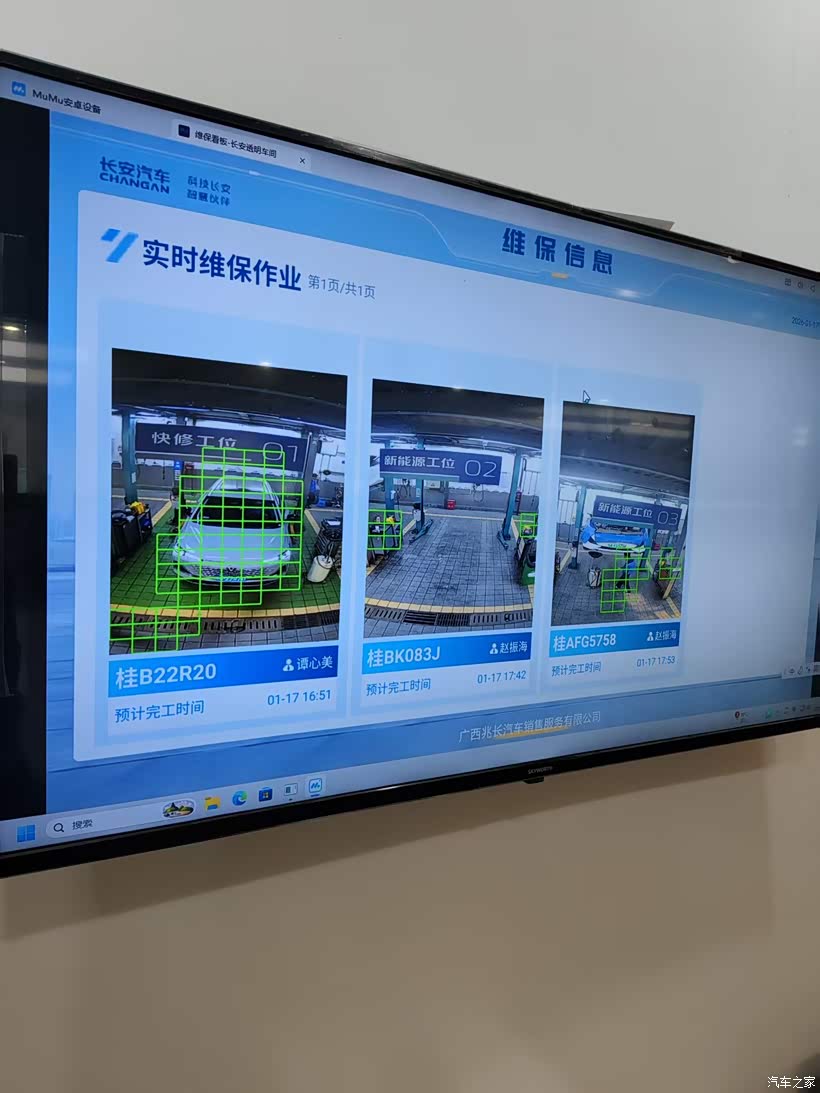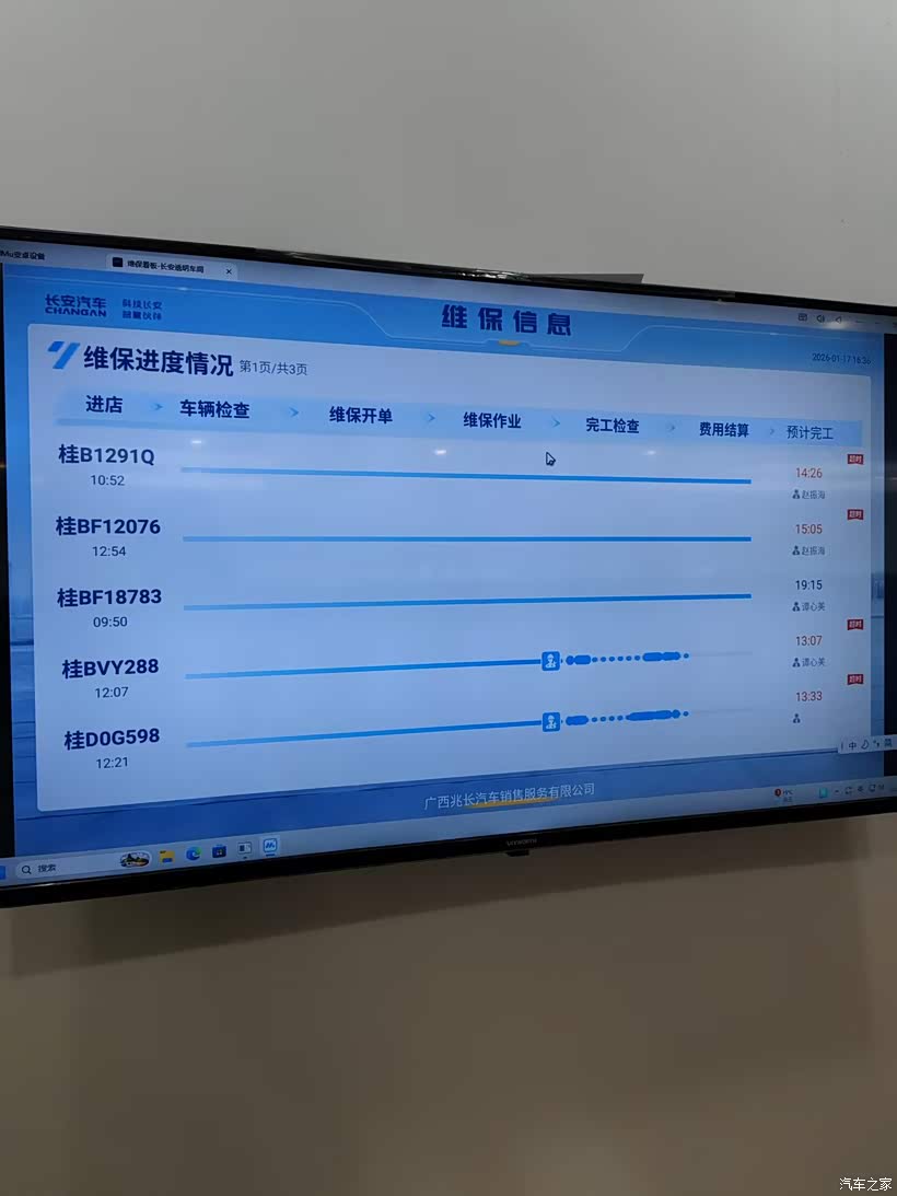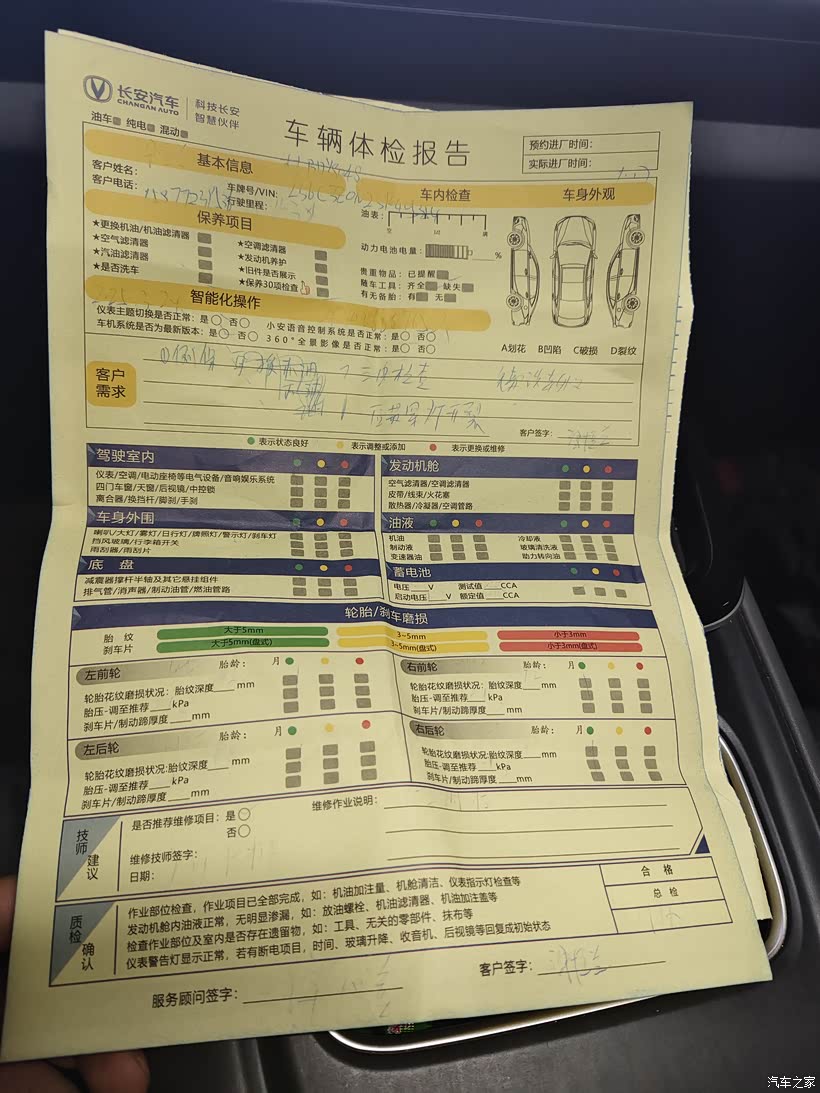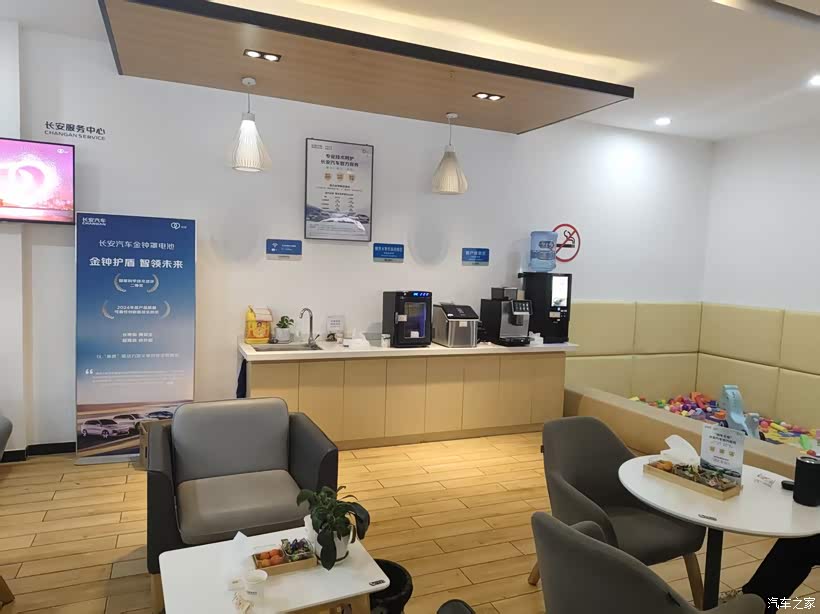 在保养期间,售后中心这里的环境还不错,有各种饮料,零食,观影休息按摩区,能实时通过大屏幕了解保养进度,保养过程很顺利,等待时间不长,大约一个半小时左右就搞完了,电池电机电控系统,轮胎,等都基本项目都检查了,除了尾灯要等过几天回复后再过来更换,车子没有其他问题。服务人员按公司的标准流程,传达了几个核心思想,注意事项,还有最重要的回访时给好评,说了一大堆基本记不住,只知道最后一句好评。因为买车的时候,4S店送了终身免费基础保养,每年有三次保养机会,所以只要不更换易损件之类的,保养是免费的,这一点给店家点个赞,最后还免费洗了一下车子外观,这个年,这个车子,基本上就这样了,期待它在春节期间的表现。#深蓝春节不打烊