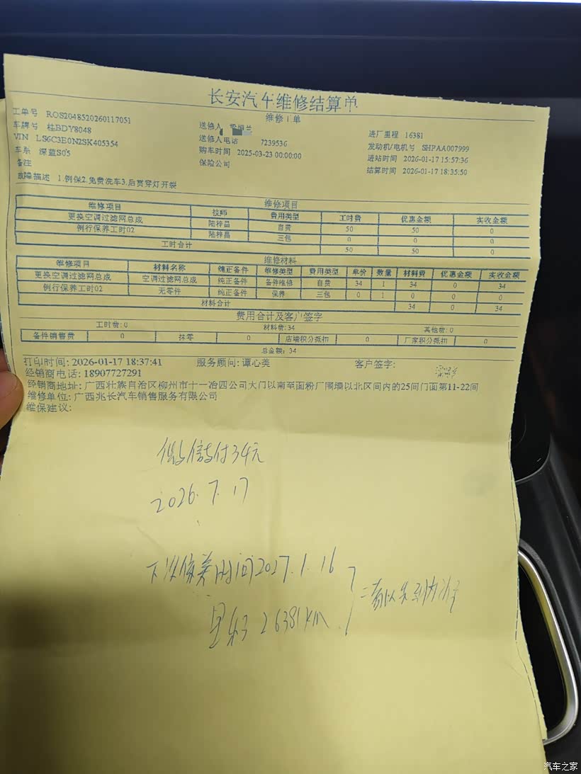 为了能在春节期间有更安全的出行,也为了能错开保养高峰期,打算在春节前两周把车开去4S店做保养,距离上次保养车子已经行驶了1万多公里,刚好4S店打电话过来提醒,果断预约了保养时间,保养前特意提醒了一下要更换尾部贯穿灯,因为之前车友反馈尾部车灯在LOGO旁边有开裂情况,刚好自己车子也有这样的问题,利用保养的时间想顺便换了。接待的服务员很认真,很负责,帮向厂家打报告申请,但是厂家一直没有回复,等过几天回复了再回来更换。