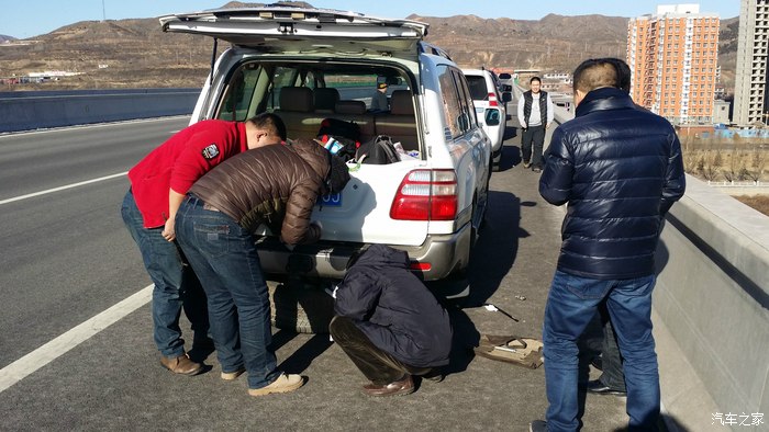 滦平路边虫子的陆巡换轮胎,报废一条轮胎。真冷啊