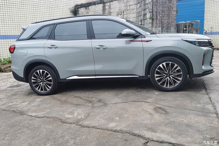 【外观】外观比展厅其它几款车型突出一些,颜色更加的亮眼,前脸大面积进气格栅造型,熏黑的进气格栅链接LED大灯显得比较大气,车头下方点缀红色装饰,让整个前脸瞬间正增色不少,车身侧面修长饱满,运动感十足。