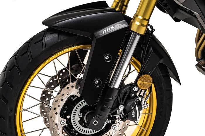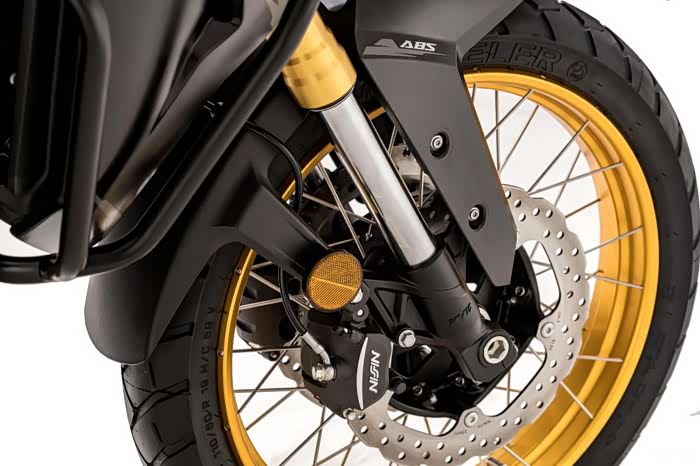 减震上新款DS625X搭载KYB提供的倒立式可调节前减震与全可调气囊后减震,前后减震行程约为180mm,离地间隙达到200mm。原厂还提供了前19后17寸的辐条轮毂,标配象牌越野轮胎。刹车上则搭载前双活塞径向卡钳配298mm双碟盘,后单活塞卡钳配240mm单碟盘,前后卡钳均由日清提供,当然双通道ABS系统及TCS牵引力控制系统也自然一样不少。