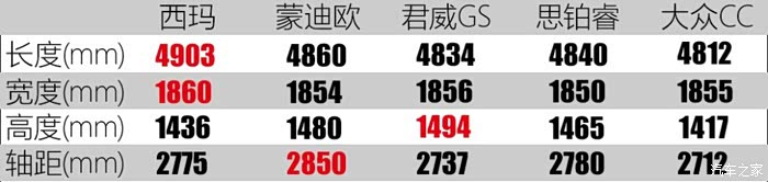 车身尺寸方面,长宽高分别为4903*1860*1436mm,,车型尺寸在同级别中具也有一定的优势;轴距为2775mm。