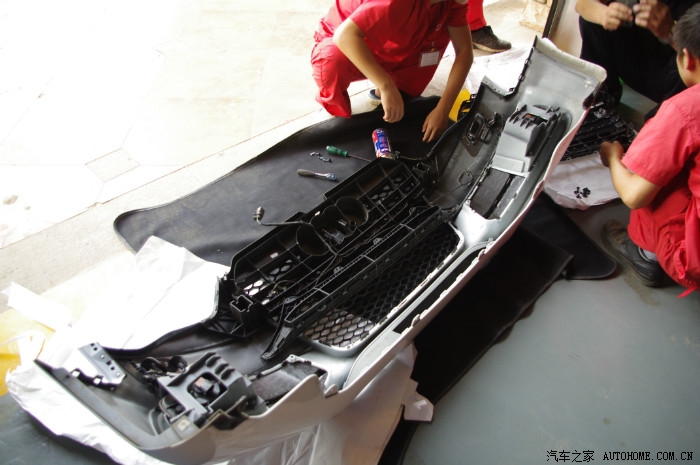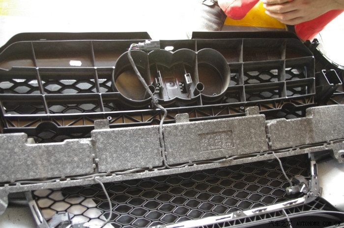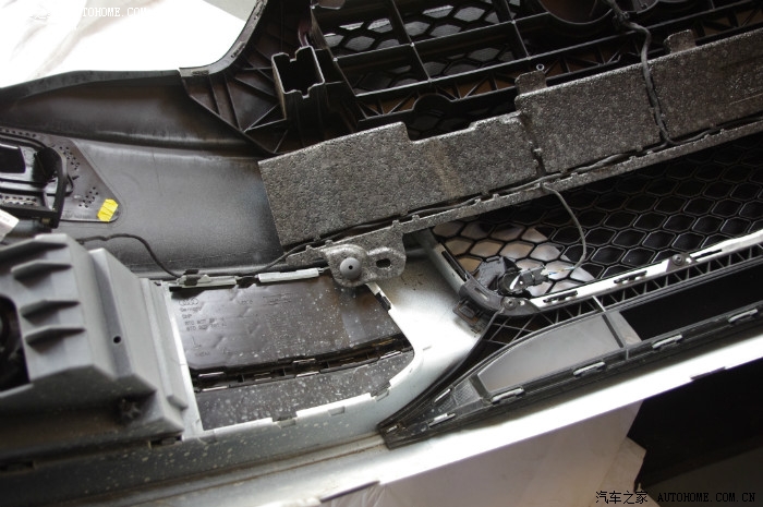 开始我以为换RS5中网是原装位按上去就完了,其实前保险杠里面很多东西跟RS5的配件都不一样,导致有一些插口上不进去!!下图介绍方便以后其他朋友改中网要注意的问题.