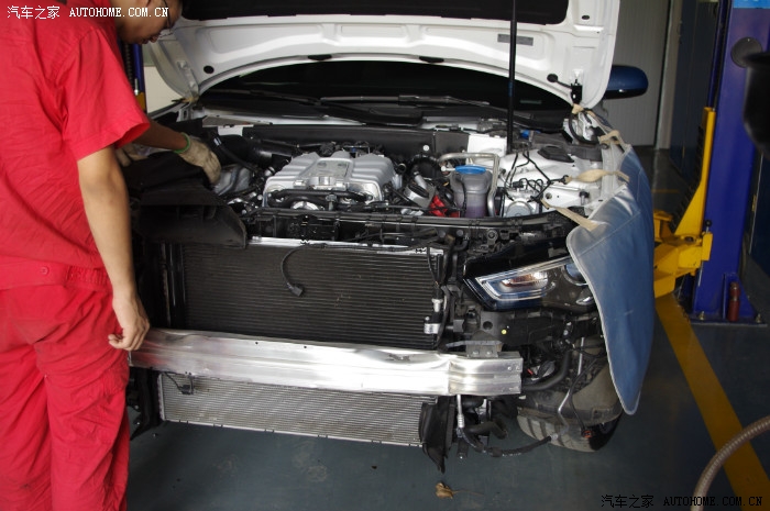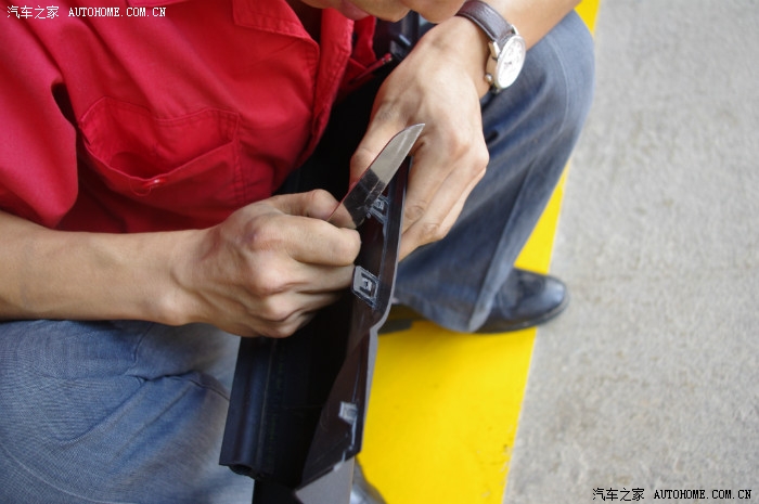 发动机最前上面那个板子,RS5中网的插口槽小了,只有把板子的插口削小点。