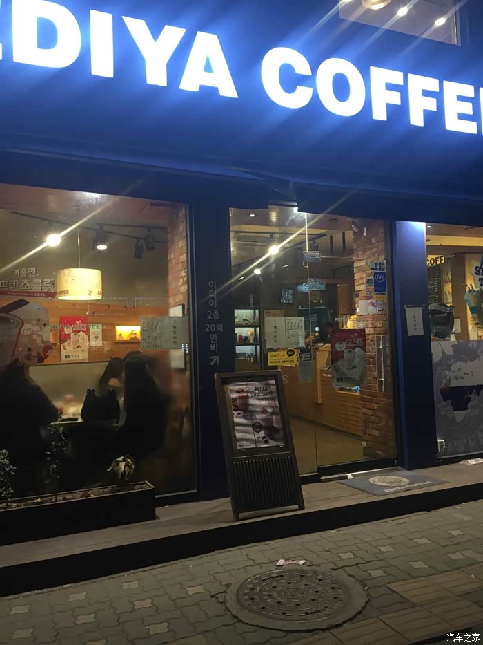 吃完饭顺便喝了点东西,这店的欧巴会说中文,东西也很好吃,两杯咖啡奶一个蛋糕结束了我们第一天,本来想去弘大俱乐部街的,但是太晚了,还要坐地铁比较远于是作罢其实人也累了