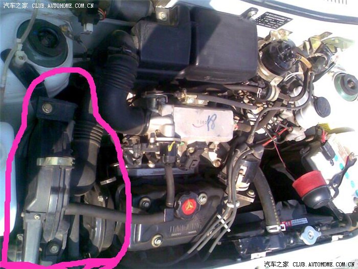 取掉针头护盖,从仪表台下穿过防火墙。因为是塑料材质,注意避开发动机舱中的高温部件。然后,将针头插入空滤器的缝隙。