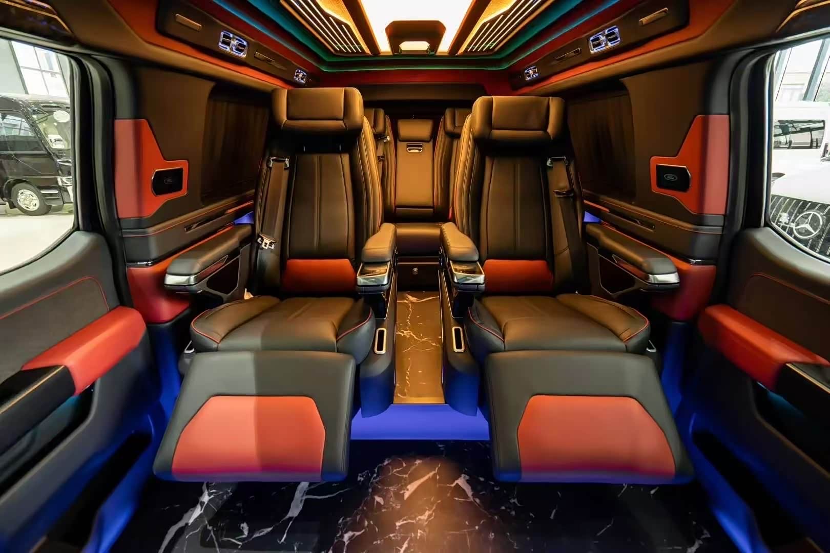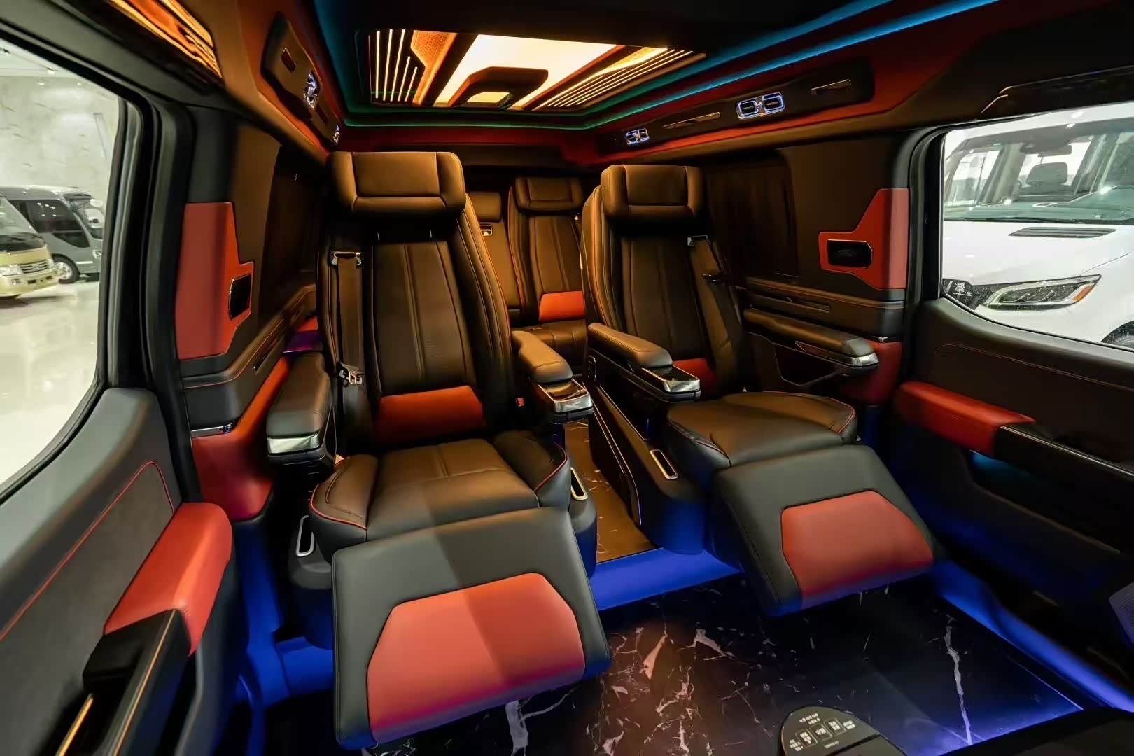 ?主要配置:上坡辅助、陡坡缓降、车道偏离、车道保持、自适应巡航、自动泊车、全车雷达、全车环影、座椅加热、座椅通风、座椅按摩、座椅记忆、座椅十种模式调节、航空座椅、独立调节靠背、电动沙发床、柚木地板、气氛灯、电动踏板、双疝气大灯自适应、日间行车灯、220V电源、无钥匙进入、远程遥控启动、隐私玻璃、天地上下门(库里南同款)、全景天窗、全车隔音、防炫目后视镜、BO音响、导航、大屏、蓝牙电话、拖车钩、电子驻车、气囊、胎压显示、电动调节方向盘、刹车高低调节、自动恒温空调、烧水壶、定制电镀出风口、独立空调、商务迈巴赫顶灯、氛围灯、脚踏板、28寸电视、碳纤维内饰、网络电视、视频直播、定制仪表盘、四门皮革+碳纤维装饰、手机无线充电等等