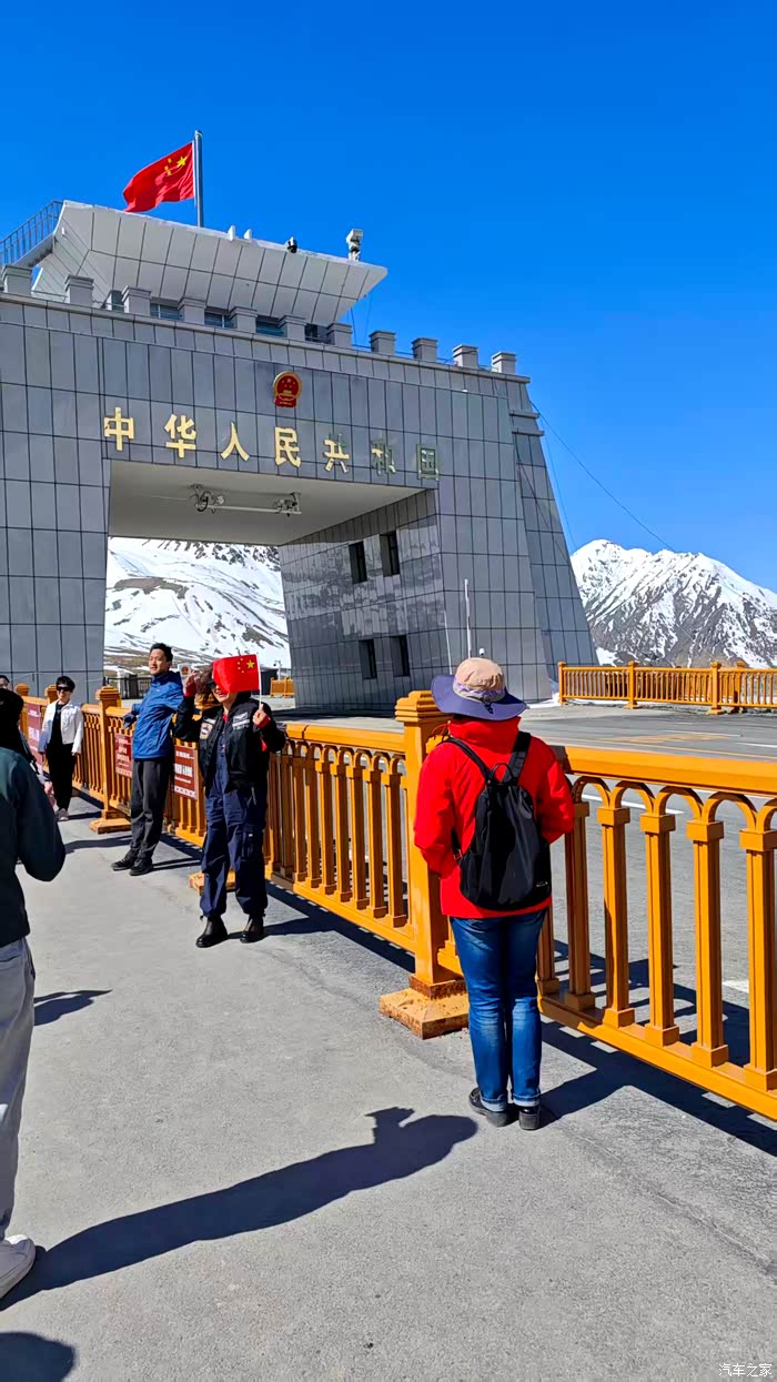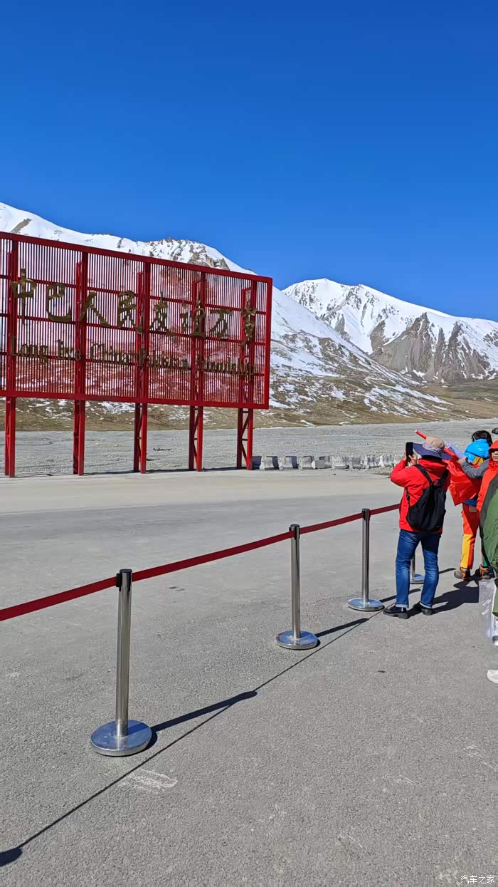 到达红其拉甫口岸,很大的简易停车场已经差不多停满车。国门是一个4A景区,排队购票,排队等景交车。到国门后还要排队拍照,主要打卡点都被人霸占着赚钱,实在有损国门形象。懒得排队,外面拍几张就回来。