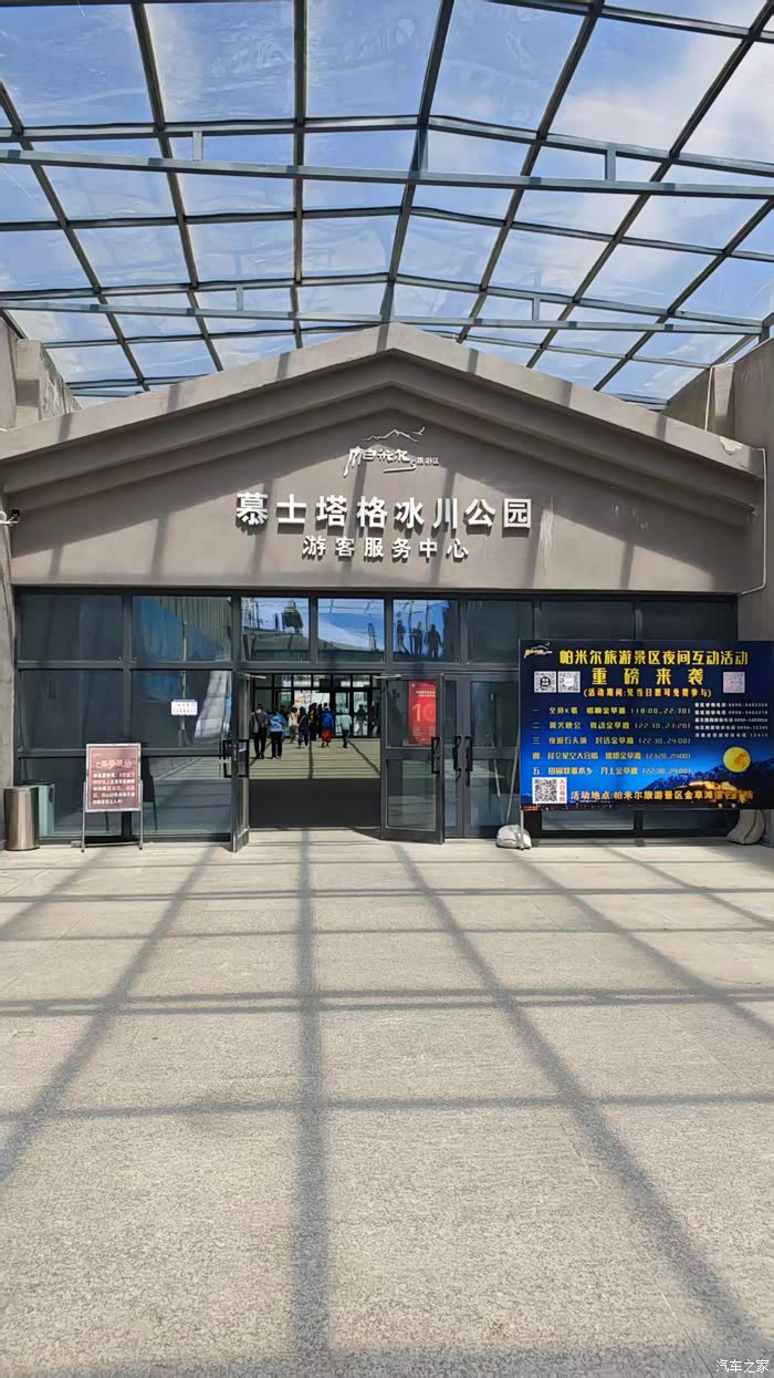 达到慕士塔格冰川公园,就在G314路边不远,有专门的路桩引导。已经建成很现代的游客中心,停车广场很大,适合露营。购票入内,景交车上山,大概有300米左右需要爬山或者骑马。最高观景台海拔4688米,可以和冰川近距离接触,值得一来。