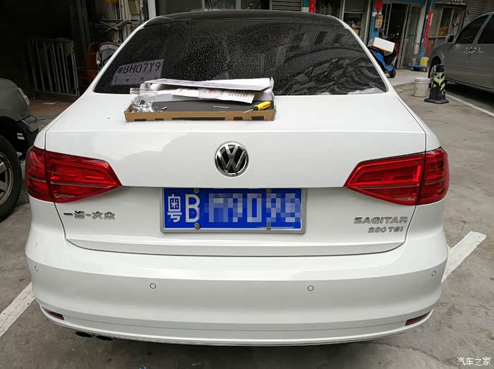 换了玻璃后,后面还被人追了个尾,女司机开车玩手机,撞了辆帕萨特,再连续撞了我的车屁股,大众车是比较扎实,帕萨特后保险杠基本没事,责任方的车发动机都撞歪了。我的车后来换了个后保险杠。后尾箱掉了漆拆下来喷漆了,把标都拆了,光屁股挺好看的。4儿子的技术把标给我自己贴,现在还丢在那。小插曲——继续ETC事情。