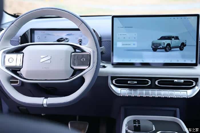看完外观,咱们再看车内。说实话,第一次见到皮卡的内饰设计如此高级,深蓝白撞色内饰风格的确好看,也显豪华感,就是易脏。强迫症患者要经常擦内饰了。其次座椅的材质挺柔软,坐上去舒服,还带加热通风功能,这些实用功能也丝毫不拉下。