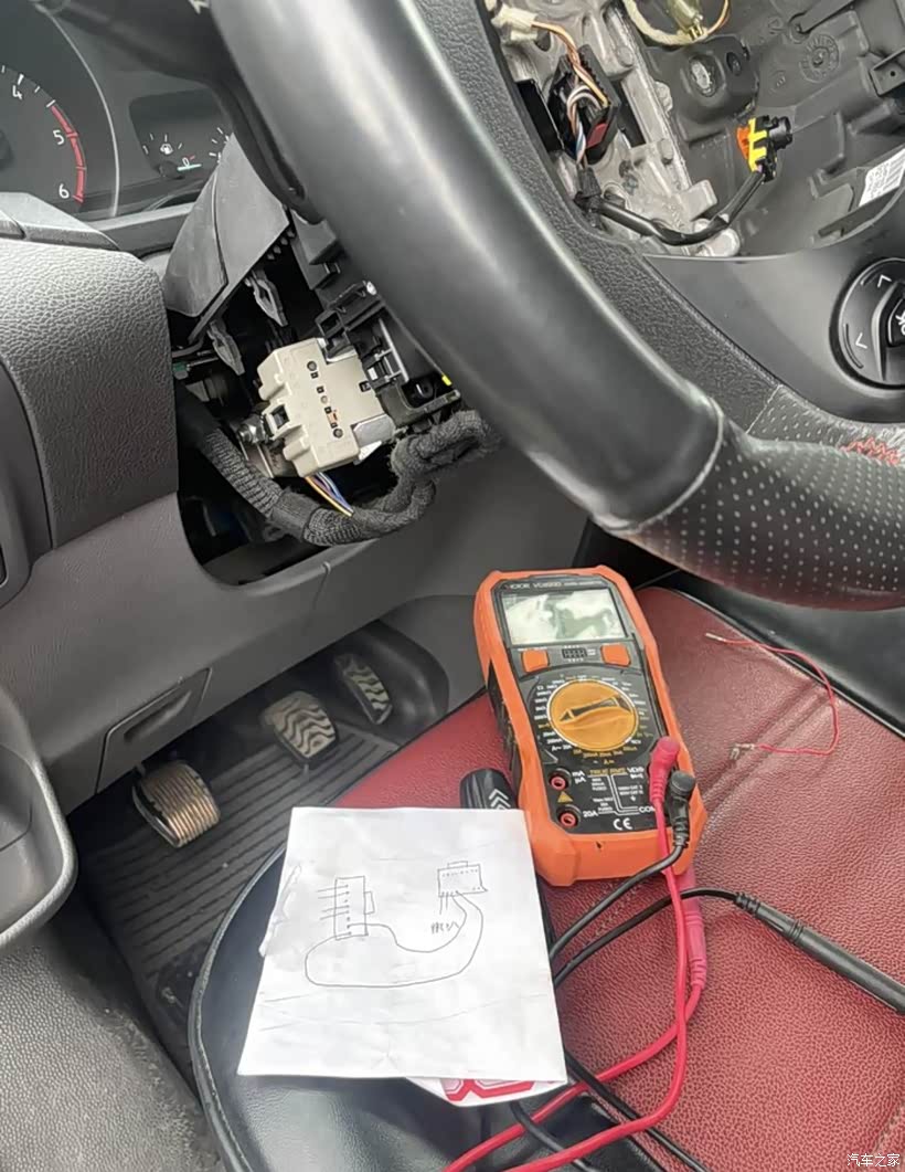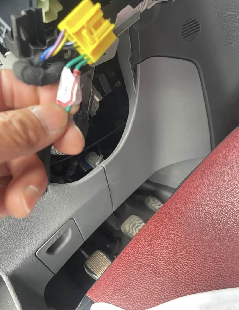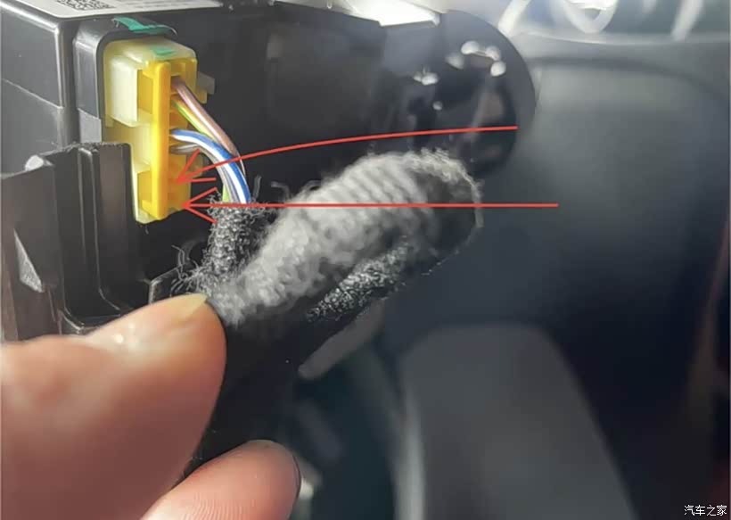 从中控屏引两条线到方向柱,通电测试一下按键,测试后再次断电,这步单纯测试可以省略,直接布线就行。