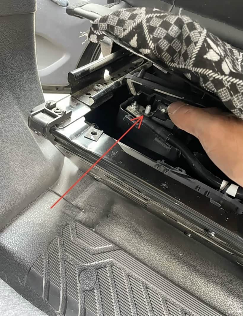 为了安全,还是断电,主驾座椅前移卸掉电瓶负极,之后拨出气囊插头橘红色卡销,再拔掉气囊插头。