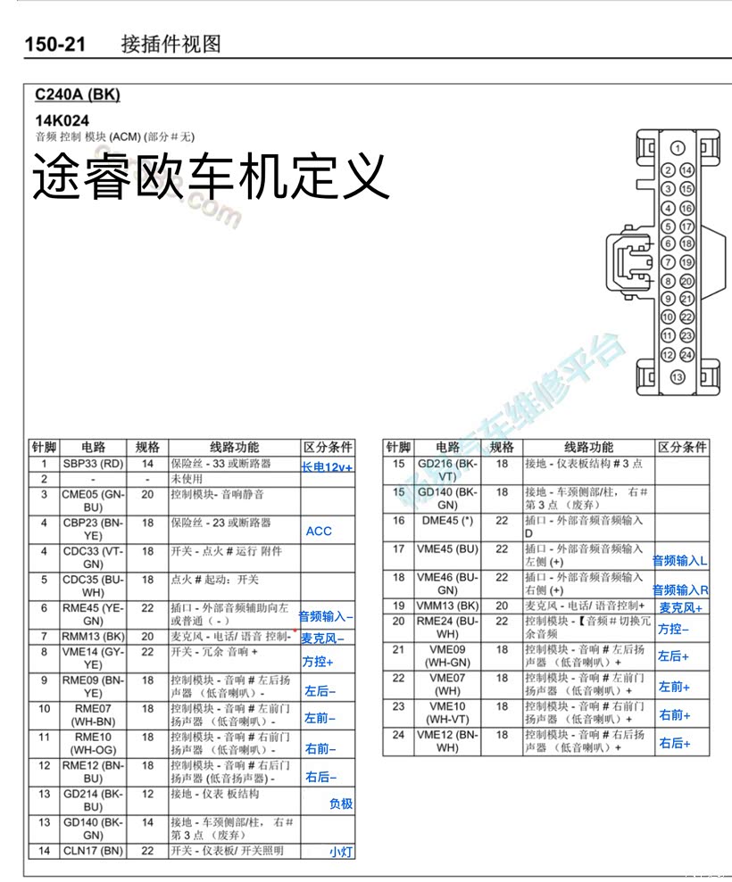 此次加装必不可少的线束定义图,有兴趣的可以共同探讨一下。