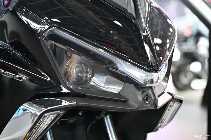 作为QJMOTOR旗下新系列车型,迅350个人认为是之前350踏板的升级版本。外观上当然也有了全新的设计,在车型用途上也有些偏舒适性的定位。外观上迅350有些和鸿ADV150类似的家族化设计,饱满的车头采用V字型的贯穿灯具,而且车身两侧以及尾部也有层次分明的设计。